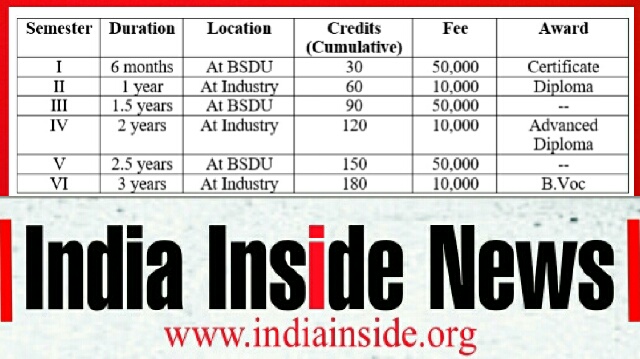 ● क्रेडिटः बी•वोक 6 सेमेस्टर (30 क्रेडिट प्रत्येक), वोक की डिग्री पाने के लिए कुल 180 क्रेडिट रखे गए है
