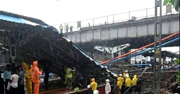 पश्चिमी रेलवे के मुम्बई डिवीजन के विले पार्ले-अंधेरी सेक्शन में आज प्रात: लगभग 7:30 बजे अंधेरी रेलवे स्टेशन के निकट स्थित रोड ओवर ब्रिज (आरओबी) (जिसे पैदल यात्रियों की आवाजाही के लिए बनाया गया है) का एक हिस्सा ढहने के बाद रेल की पटरियों पर गिर गया जिससे किलोमीटर 21/7 पर स्थित ओवरहेड इलेक्ट्रिक लाइनें क्षतिग्रस्त हो गईं। इस हादसे की वजह से गोरेगांव और बांद्रा स्टेशनों के बीच दोनों ही तरफ से रेलगाडि़यों की आवाजाही थम गई। इस हादसे में 5 लोग घायल हो गए हैं। घायलों को तुरंत कूपर अस्पताल में भर्ती करा दिया गया है। रेलवे के डॉक्टरों की विशेष मेडिकल टीम घायलों की देख-रेख में जुट गई। एनडीआरएफ, आपदा प्रबंधन टीम, अग्नि शमन, पश्चिमी रेलवे के अपर महाप्रबंधक, मुम्बई डिवीजन के मंडल रेल प्रबंधक और रेलवे के अन्य वरिष्ठ अधिकारीगण इस रूट पर रेल सेवाओं को बहाल करने के लिए घटनास्थल पर पहुंच गए।