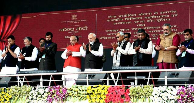 बिहार में स्वास्थ्य देखभाल प्रणाली के विस्तार का अनावरण करते हुए उन्होंने कहा कि ‘स्वास्थ्य अवसंरचना विकास के लिहाज से बिहार के लिए यह एक ऐतिहासिक दिन है। छपरा एवं पूर्णिया में नए चिकित्सा महाविद्यालयों की स्थापना की जाएगी, जबकि गया एवं भागलपुर में चिकित्सा एवं महाविद्यालयों का उन्नयन किया जा रहा है। उन्होंने कहा कि पटना में एम्स की स्थापना हो चुकी है, जबकि लोगों की स्वास्थ्य आवश्कताओं की पूर्ति के लिए राज्य में एक अन्य एम्स की स्थापना का कार्य चल रहा है।’