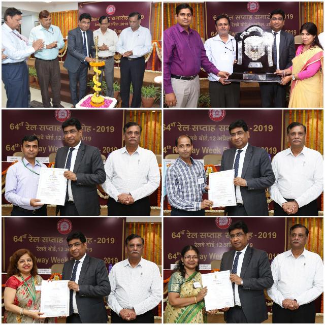 रेलवे बोर्ड का 64वां रेलवे सप्ताह समारोह आज 12 अप्रैल, 2019 को नई दिल्ली स्थित रेल भवन में मनाया गया। रेलवे बोर्ड के चेयरमैन वी• के• यादव ने समारोह की अध्यक्षता की और वर्ष 2018-19 के दौरान उत्कृष्ट प्रदर्शन के लिए रेलवे बोर्ड के विभिन्न पदाधिकारियों को रनिंग एफिशिएंसी शील्ड, मेरिट सर्टिफिकेट एवं अन्य पुरस्कार प्रदान किए। रेलवे बोर्ड के अन्य सदस्य और वरिष्ठ अधिकारीगण भी इस अवसर पर उपस्थित थे।