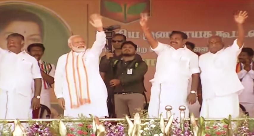 प्रधानमंत्री नरेंद्र मोदी ने आज तमिलनाडु के थेनी में चुनावी जनसभा को संबोधित किया। उन्होंने बाबा साहब अंबेदकर और जालियांवाला बाग के शहीदों को श्रद्धांजलि दी। उन्होंने कहा कि मैं महान एमजीआर और जयललिता को भी श्रद्धांजलि देता हूं। भारत को उन दो प्रतिष्ठित नेताओं पर गर्व है जिन्होंने गरीबों के लिए काम किया।