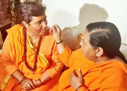 बता दें कि उमा भारती ने कहा था कि साध्वी प्रज्ञा ठाकुर महान संत हैं, उनके मुकाबले मैं बहुत साधारण और मूढ़ प्राणी हूं। उमा भारती के बयान पर साध्वी ने कहा था कि उमा जी से कहती हूं कि मेरा इतना सम्मान न करिए। आप मुझसे बड़ी और सम्मानित हैं।