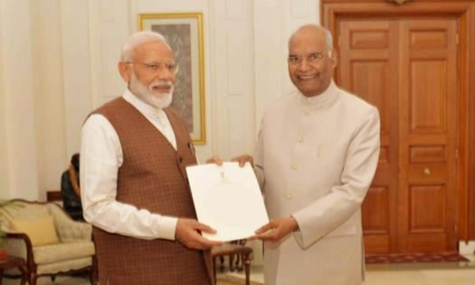 एनडीए संसदीय दल के नेता चुने जाने के बाद प्रधानमंत्री नरेंद्र मोदी ने राष्ट्रपति रामनाथ कोविंद से मिलकर नई सरकार बनाने का दावा पेश किया। संसदीय दल की बैठक के बाद करीब साढ़े आठ बजे नरेन्द्र मोदी राष्ट्रपति भवन पहुंचे और राष्ट्रपति से मुलाकात की।