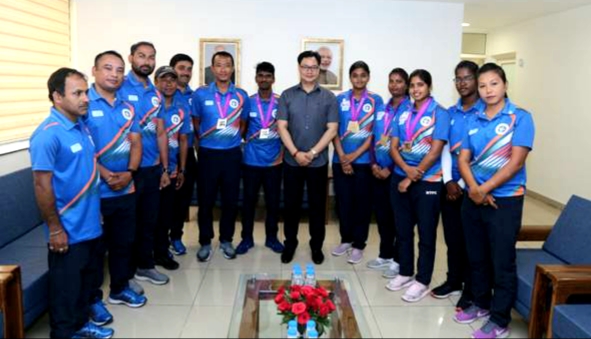युवा मामले और खेल राज्य मंत्री (स्वतंत्र प्रभार) किरेन रिजिजू ने पिछले हफ्ते नीदरलैंड के हर्टोजेनबोश में आयोजित विश्व तीरंदाजी चैंपियनशिप में शानदार प्रदर्शन के लिए भारतीय तीरंदाजों के दल को सम्मानित किया। भारतीय खेल प्राधिकरण के मुख्यालय में तीरंदाजों से मुलाकात करते हुए उन्हें टोक्यो 2020 का ओलंपिक कोटा और इस चैम्पियनशिप में तीन पदक जीतने के लिए बधाई दी।