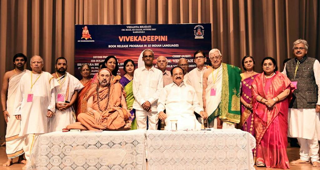 श्री नायडू ने श्री आदि शंकाराचार्य के ज्ञानपूर्ण संदेशों का अंग्रेजी, कन्नड़, हिंदी, तमिल, बांग्ला, तेलुगु, मलयालम, मराठी, ओडिया और गुजराती भाषाओं के माध्यम से प्रचार- प्रसार करने के लिए वेदांत भारती की भी सराहना की। उन्होंने कहा कि ये संदेश लोगों तक अपने सही अर्थों में पहुंचने चाहिए, उन्होंने आशा व्यक्त की कि सभी भारतीय भाषाओं में विवेकदीपिनी का अनुवाद किया जाएगा।