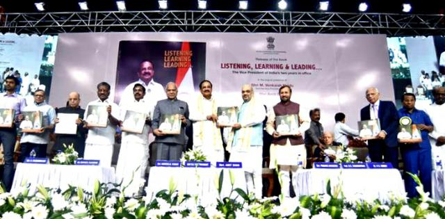 केंद्रीय गृह मंत्री अमित शाह ने रविवार 11 अगस्त को चेन्नई में उपराष्ट्रपति वेंकैया नायडु द्वारा उपराष्ट्रपति के रूप में दो साल के कार्यकाल पर लिखी पुस्तक ‘लिस्टिंग, लर्निंग एंड लीडिंग’ का विमोचन करते हुए कहा कि इस पुस्तक का शीर्षक उपराष्ट्रपति वेंकैया जी के जीवन की व्याख्या करता हुआ शीर्षक है। उनका कहना था कि श्री नायडु का जीवन युवाओं के लिये अनुकरणीय है और यह पुस्तक सभी के लिए मार्गदर्शन का कार्य करेगी।