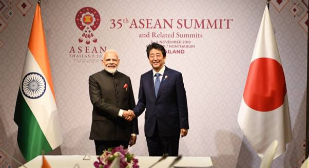 प्रधानमंत्री नरेन्द्र मोदी ने आज 4 नवंबर 2019 को भारत-आसियान शिखर बैठक के अवसर पर जापान के प्रधानमंत्री शिंजो आबे से अलग से मुलाकात की । दोनों नेताओं के बीच पिछले चार महीनों में तीन बार भेंट हो चुकी है। इनकी पिछली मुलाकात सितंबर 2019 में व्लादिवोस्तोक में हुयी थी।