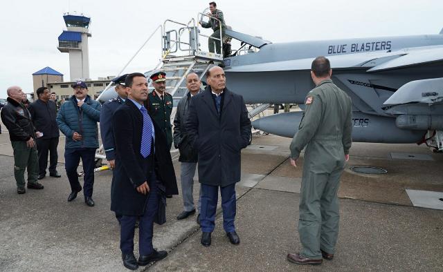 अमरीका में भारत के राजदूत हर्षवर्धन श्रृंगला, रक्षा सचिव डा• अजय कुमार तथा भारत सरकार के कई वरिष्ठ अधिकारी और ड्यूटी पर तैनात कई सैन्य अधिकारी भी इस अवसपर रक्षा मंत्री के साथ थे। भारतीय शिष्टमंडल का स्वागत अमरीकी रक्षा नीति विभाग के उपमंत्री डा जेम्स एंडर्सन, अमरीकी नौसेना के एंटलांटिक वायुसैन्य बल के रियर एडमिरल रॉय केली, नौसेना के अंतर्राष्ट्रीय अभियानों के उप सहायक मंत्री रियर एडमिरल फ्रांसिस मोर्ले और एनएएस ओशियाना के कमांडिंग ऑफिसर कैप्टन जॉन हेविट् ने किया।