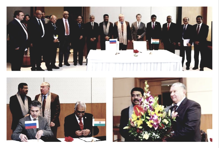पेट्रोलियम एवं प्राकृतिक गैस और इस्पात मंत्री धर्मेन्द्र प्रधान और रोजनेफ्त के सीईओ एवं चेयरमैन आईगोर सेचिन ने बुधवार को नई दिल्ली में द्विपक्षीय बैठक की। दोनों ही नेता वर्ष 2020 के दौरान भारत में दो मिलियन मीट्रिक टन यूराल ग्रेड कच्चे तेल के आयात के लिए आईओसीएल और रोजनेफ्त के बीच प्रथम सावधि अनुबंध पर हस्ताक्षर के भी साक्षी रहे। दीर्घावधि अनुबंधों के जरिये रूस से कच्चे तेल की प्राप्ति गैर-ओपेक देशों से देश में कच्चे तेल की आपूर्ति में विविधिता से जुड़ी भारतीय रणनीति का एक हिस्सा है। इसके साथ ही यह हाइड्रोकार्बन क्षेत्र में द्विपक्षीय सहयोग के लिए पंचवर्षीय रोडमैप का भी एक हिस्सा है, जिस पर पिछले सितम्बर माह में प्रधानमंत्री नरेन्द्र मोदी की व्लादिवोस्तोक यात्रा के दौरान हस्ताक्षर किये गये थे।