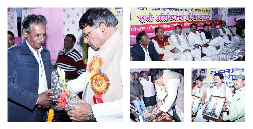 इंडियन फेडरेशन ऑफ वर्किंग जर्नलिस्ट्स (आई•एफ•डब्ल्यू•जे•) मध्यप्रदेश इकाई की बेतूल जिला इकाई द्वारा गत दिवस बैतुल प्रेस क्लब के प्रांगण में मंत्रीगण का सम्मान समारोह कार्यक्रम आयोजित किया गया। जिसमें क्षेत्रीय पत्रकारों ने बढ़ चढ़कर हिस्सा लिया।