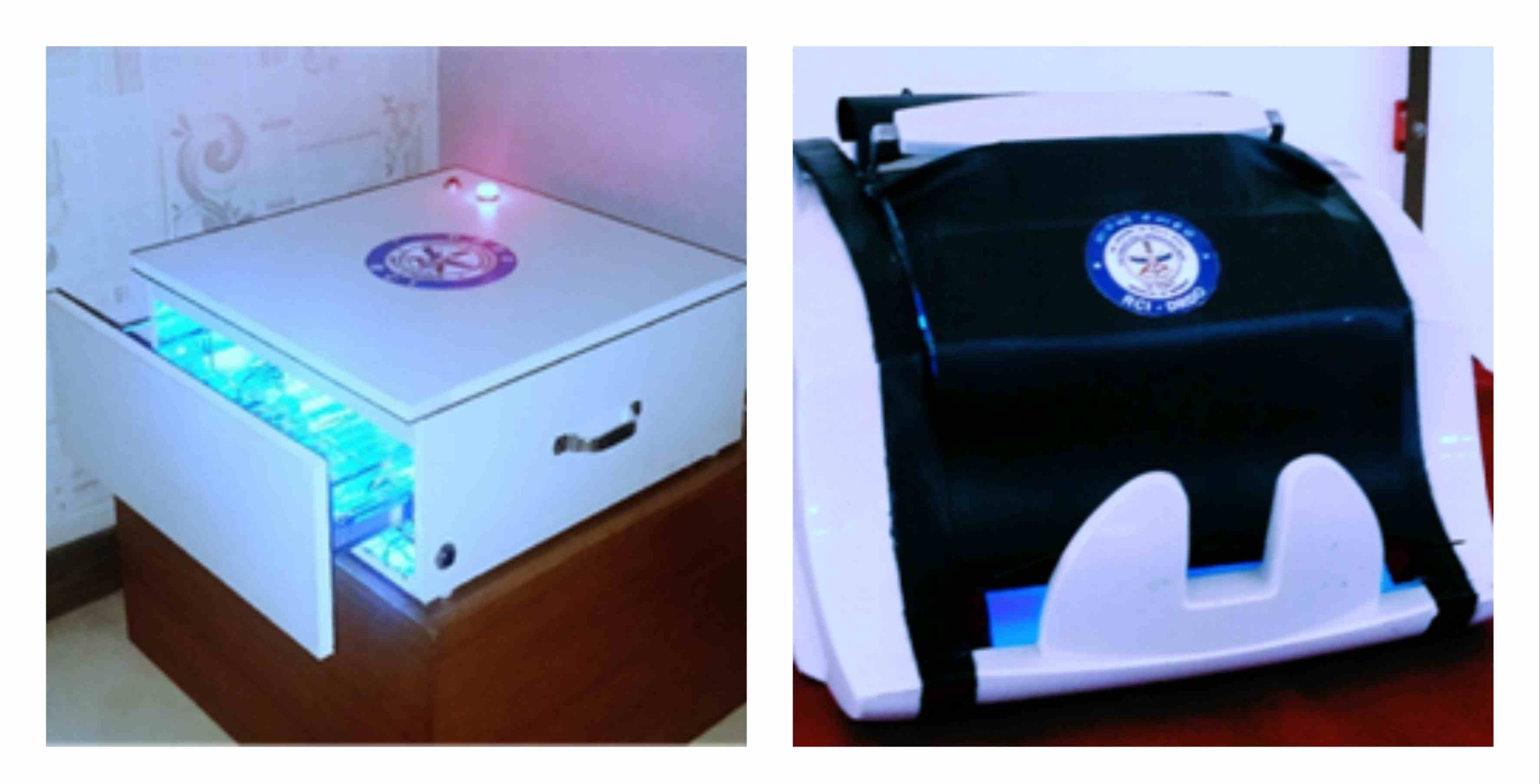 रक्षा अनुसंधान और विकास संगठन (डीआरडीओ) की प्रमुख प्रयोगशाला, रिसर्च सेंटर इमारत (आरसीआई), हैदराबाद ने एक स्वचालित व संपर्करहित यूवीसी सेनेटाइजेशन कैबिनेट विकसित किया है, जिसे डिफेन्स रिसर्च अल्ट्रावायोलेट सेनेटाइज़र (डीआरयूवीएस) नाम दिया गया है। इसे मोबाइल फोन, आईपैड, लैपटॉप, करेंसी नोट, चेक, चालान, पासबुक, कागज, लिफाफे आदि को कीटाणुमुक्त करने के लिए डिजाइन किया गया है।