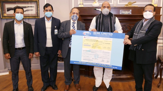रक्षा क्षेत्र में सार्वजनिक क्षेत्र के उपक्रम (डीपीएसयू) भारत अर्थ मूवर्स लिमिटेड (बीईएमएल) ने सोमवार को नई दिल्ली में 5.625 करोड़ रुपये का लाभांश रक्षा मंत्री राजनाथ सिंह को सौंपा। बीईएमएल के अध्यक्ष तथा प्रबंध निदेशक डॉक्टर दीपक कुमार होता ने इसके लिये चेक का भुगतान किया।