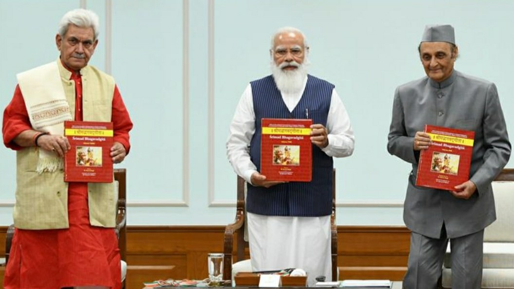 प्रधानमंत्री नरेन्द्र मोदी ने श्रीमद्भगवद्गीता की पांडुलिपि के साथ इसके श्लोकों पर 21 विद्वानों के भाष्य जारी किये। इस अवसर पर जम्मू और कश्मीर के उपराज्यपाल मनोज सिन्हा तथा धर्मार्थ ट्रस्ट, जम्मू-कश्मीर के अध्यक्ष ट्रस्टी डॉ• करण सिंह भी उपस्थित थे।