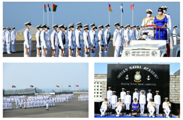 भारतीय नौसेना अकादमी (आईएनए), एझिमाला में 27 नवंबर 2021 को आयोजित एक शानदार पासिंग आउट परेड (पीओपी) में 231 प्रशिक्षुओं में 101 आईएनएसी के मिडशिपमैन, 31 नेवल ओरिएंटेशन कोर्स (एक्सटेंडेड) के कैडेट तथा 33 नेवल ओरिएंटेशन कोर्स (रेग्युलर और कोस्ट गार्ड) के कैडेट अपने शुरुआती प्रशिक्षण की समाप्ति पर पास आउट हुए।