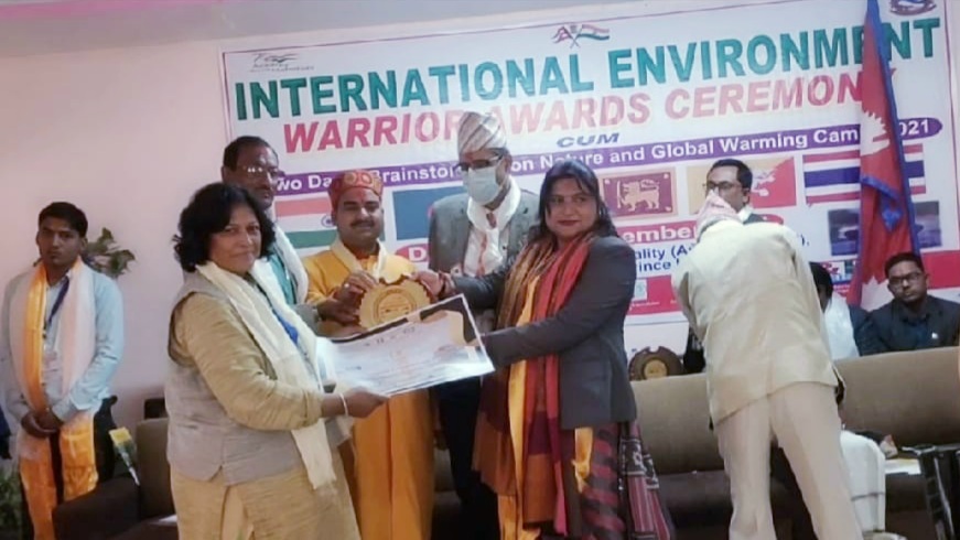 इस अवसर पर जगत विज़न मासिक पत्रिका की संपादक विजया पाठक को पर्यावरण संरक्षण पर महत्वपूर्ण कार्य करने के लिए अंतर्राष्ट्रीय पर्यावरण योद्धा सम्मान 2021 से सम्मानित किया गया। यह सम्मान कार्यक्रम की मुख्य अतिथि सुषमा यादव राज्यमंत्री आर्थिक मामला तथा सहकारी मंत्रालय लुम्बनी नेपाल द्वारा दिया गया।