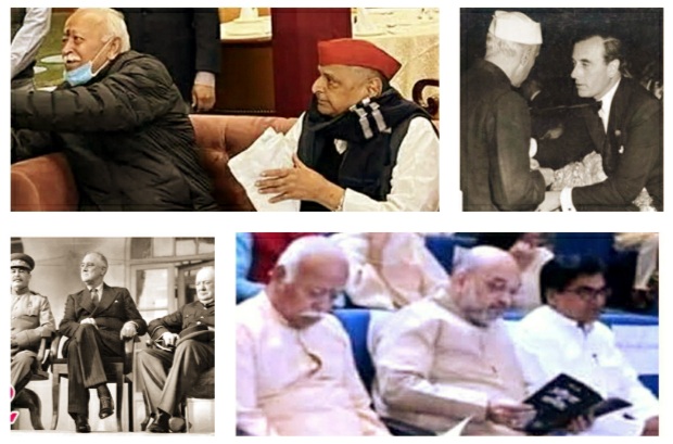 एक रिपोर्टर के नाते मेरी यह निजी अवधारणा है कि हम हजार शब्दों की रपट भी लिख डालें, पर प्रेस फोटोग्राफर साथी की एक उम्दा फोटो का केवल एक शॉट हमसे कहीं ज्यादा अभिव्यक्ति कर देता है। मसलन आज के (22 दिसंबर 2021) दैनिकों में मुलायम सिंह यादव और उनके कट्टर विरोधी राष्ट्रीय स्वयं सेवक संघ के सरसंचालक मोहन मधुकर भागवत एक ही सोफा पर, केवल सांस की दूरी पर, विराजे हैं। फोटो बिना कहे, काफी कुछ कह देती है। अवसर था मुप्पवरपु वेंकय्या नायडू (उपराष्ट्रपति) के घर एक वैवाहिक समारोहवाला। टिप्पणियों और चुटकियों का सिलसिला अनवरत चला। अखबारों में और टीवी के पर्दे पर भी।