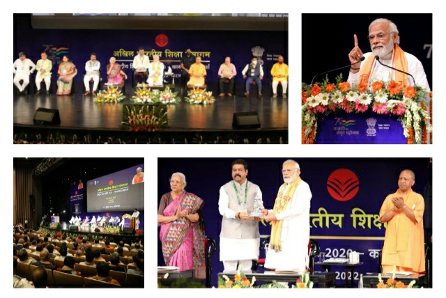प्रधानमंत्री नरेन्द्र मोदी ने गुरुवार को वाराणसी में राष्ट्रीय शिक्षा नीति के कार्यान्वयन पर अखिल भारतीय शिक्षा समागम का उद्घाटन किया। उत्तर प्रदेश की राज्यपाल आनंदीबेन पटेल, उत्तर प्रदेश के मुख्यमंत्री योगी आदित्यनाथ, केंद्रीय मंत्री धर्मेंद्र प्रधान, अन्नपूर्णा देवी, डॉ. सुभाष सरकार, डॉ. राजकुमार रंजन सिंह, राज्य के मंत्री, शिक्षाविद और अन्य हितधारक इस अवसर पर उपस्थित थे।