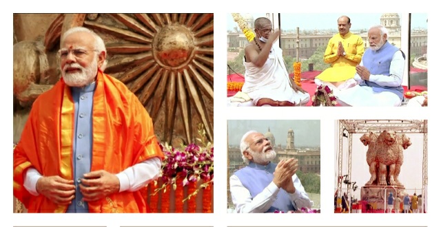 प्रधानमंत्री नरेन्द्र मोदी ने सोमवार सुबह नए संसद भवन की छत पर बने राष्ट्रीय प्रतीक का अनावरण किया।