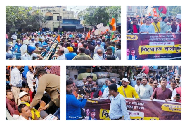 हावड़ा नगर निगम इलाके में व्यापक रूप से बढ़ रहे डेंगू के प्रकोप को रोकने में असमर्थ निगम के खिलाफ आज हावड़ा ज़िला भारतीय जनता युवा मोर्चा (भाजयुमो) का विरोध प्रदर्शन हुआ। हावड़ा मैदान स्थित स्वामी विवेकानंद की मूर्ति के पास से सैकड़ों भाजयुमो कार्यकर्ताओं की उपस्थिति में भाजयुमो के प्रदेश महासचिव एवं खानाकुल के विधायक सुशांत घोष, प्रदेश भाजपा सचिव उमेश राय, ज़िला भाजपा अध्यक्ष मनी मोहन भट्टाचार्य के नेतृत्व में जुलूस निगम की ओर बढ़ा। हावड़ा मैदान के बंगोबासी से महात्मा गांधी रोड होते हुए निगम की ओर बढ़ते भाजपा कार्यकर्ताओं को निगम कार्यालय पहुचने से पहले ही पुलिस ने भारी संख्या बल के साथ बैरिकेड कर रोक लिया। जहां भाजपा कार्यकर्ताओं और पुलिस में नोकझोंक हुई।