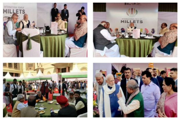केंद्रीय कृषि एवं किसान कल्याण मंत्रालय द्वारा मंगलवार को संसद परिसर में सांसदों के लिए 'विशेष मिलेट्स लंच' आयोजित कर देश-दुनिया में मिलेट्स को बढ़ावा देने की बड़ी पहल की गई। वर्ष 2023 में अंतरराष्ट्रीय पोषक-अनाज वर्ष मनाने की तैयारी की दृष्टि से, आयोजन में उपराष्ट्रपति व राज्यसभा के सभापति जगदीप धनखड़, प्रधानमंत्री नरेंद्र मोदी, लोकसभा स्पीकर ओम बिरला, राज्यसभा के उपसभापति हरिवंश, पूर्व प्रधानमंत्री एच.डी. देवगौड़ा, भाजपा के राष्ट्रीय अध्यक्ष जे.पी. नड्डा, कांग्रेस के राष्ट्रीय अध्यक्ष मल्लिकार्जुन खड़गे, लोकसभा में कांग्रेस के नेता अधीरंजन चौधरी, राज्यसभा में सदन के नेता व केंद्रीय मंत्री पीयूष गोयल सहित अन्य मंत्रियों व राज्यसभा व लोकसभा के सदस्यों ने शामिल होकर ज्वार, बाजरा, रागी जैसे पोषक-अनाज से तैयार व्यंजनों का स्वाद लिया और दिल खोलकर इनकी तथा समग्र आयोजन की तारीफ की व मिलेट्स ईयर का स्वागत किया।