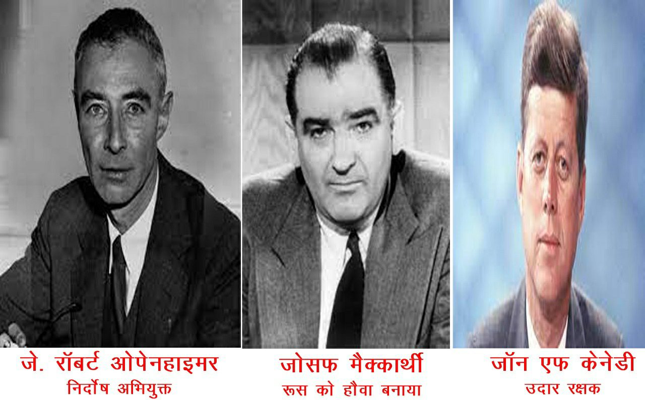 शायद ओपनहाइमर पर श्राप था दो ध्वस्त जापानी शहरों की जनता का। त्रासदी की अनुभूति स्वयं उन्हे भी हो रही थी। अतः वे प्रारूब्ध भुगतने हेतु विवश थे। इसीलिए वे जमकर सक्रिय विरोध करते रहे, जब राष्ट्रपति हैरी ट्रूमन ने परमाणु बम बनाने का आदेश दिया था। अमेरिकी राष्ट्रपति को खौफ था कि विश्वयुद्ध जीतकर सोवियत रूस अधिक विनाशकारी बम बनायेगा। विश्वव्यापी वर्चस्व बना लेगा। मगर विनाश की विभीषिका के आतंक से भयभीत ओपनहाइमर ने सरकार से सहयोग नहीं किया। तभी सिनेटर जोसेफ मेक्कार्थी का आविर्भाव हुआ। वे इतिहास में जाने जाते हैं कम्युनिस्टों के उग्रतम विरोधी और सोवियत रूस के घोरतम शत्रु के रूप में। उन्होंने ओपनहाइमर को सोवियत कम्युनिस्टों का यार करार दिया। तभी से इस भयातुर वैज्ञानिक की दुखगाथा शुरू हुई। विश्व युद्ध समाप्त होने के बाद, ओपेनहाइमर नवनिर्मित संयुक्त राज्य अमेरिका परमाणु ऊर्जा आयोग की प्रभावशाली जनरल एडवाइजरी कमेटी के अध्यक्ष बने। उन्होंने परमाणु प्रसार को बाधित करने और सोवियत संघ के साथ परमाणु हथियारों की दौड़ को रोकने के लिए परमाणु ऊर्जा के अंतर्राष्ट्रीय नियंत्रण के लिए अपने पद का उपयोग किया। उनके स्पष्ट विचारों के लिए कई नेताओं की आलोचना के बाद, ओपनहाइमर की 1954 में एक फरेबी सुनवाई में शासकीय सुरक्षा गारंटी रद्द कर दी गयी। आरोपी बनाया। प्रभावी रूप से उनकी प्रत्यक्ष राजनीतिक शक्ति को क्षीण कर दिया गया। तब भी उन्होंने भौतिकी में व्याख्यान, लेखन और काम करना जारी ही रखा। नौ साल बाद, राष्ट्रपति जॉन एफ कैनेडी ने उन्हें सम्मानित किया। उपराष्ट्रपति लिंडन बी जॉनसन ने उन्हें राजनीतिक पुनर्वास के संकेत के रूप में एनरिको फर्मी पुरस्कार के साथ नवाजा।