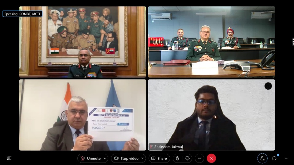 ● साइबर निवारण: कैप्चर द फ्लैग (सीटीएफ) - मौजूदा साइबर सुरक्षा व्यवस्था को मजबूत करने को लेकर प्रतिभा की पहचान करने के लिए यह एक सात चरणों वाली साइबर सुरक्षा दोहन चैलेंज थी। इसके विजेता हैदराबाद में एमवीएसआर इंजीनियरिंग कॉलेज के बीई (सीएस) सक्षम जायसवाल थे। वे अभी एक फ्रीलांसर के रूप में काम कर रहे हैं और उसके पास इस क्षेत्र में 15 से अधिक मूल योग्यताएं हैं। वहीं, पुणे स्थित आर्मी इंस्टीट्यूट ऑफ टेक्नोलॉजी (एआईटी) में बीई (आईटी) के छात्र प्रिंस कुमार पटेल ने दूसरा और बीकानेर स्थित महाराजा गंगा सिंह विश्वविद्यालय के बीसीए की पढ़ाई करने वाले श्री हरदीप सिंह ने तीसरा पुरस्कार जीता है।