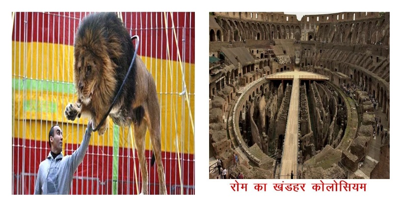 शेर का उत्कृष्टतम मानवीय प्रसंग है रोम (इटली) का। काफी मशहूर है। वहां एक यूनानी दर्जी एंड्रोक्लियस को गुस्सैल रोमन सम्राट ने शेर के साथ कोलोसियम स्टेडियम में फेंक दिया। मगर भूखे शेर ने उस आदमी को खाया नहीं। आश्चर्यचकित सम्राट को कैदी एंड्रोक्लियस ने बताया कि जंगल में एक बार कांटा चुभने से एक शेर कराह रहा था। तब इसी व्यक्ति ने कांटा निकाला था। यह वही शेर है। अनुग्रहीत था। अतः उसे मारा नहीं। अर्थात पशु में भी कृतज्ञता की भावना होती है। एकदा रोम में हुये अपने वैश्विक पत्रकार अधिवेशन में सपरिवार मैं गया था। तो अपनी पत्नी डॉ सुधा, पुत्री विनीता, पुत्र सुदेव और पत्रकार-पुत्र विश्वदेव (विशु) को कालोसियम के खंडहर दिखाने ले गया था। पशु द्वारा एहसान चुकाने वाला पाठ उन्हे सुनाया।