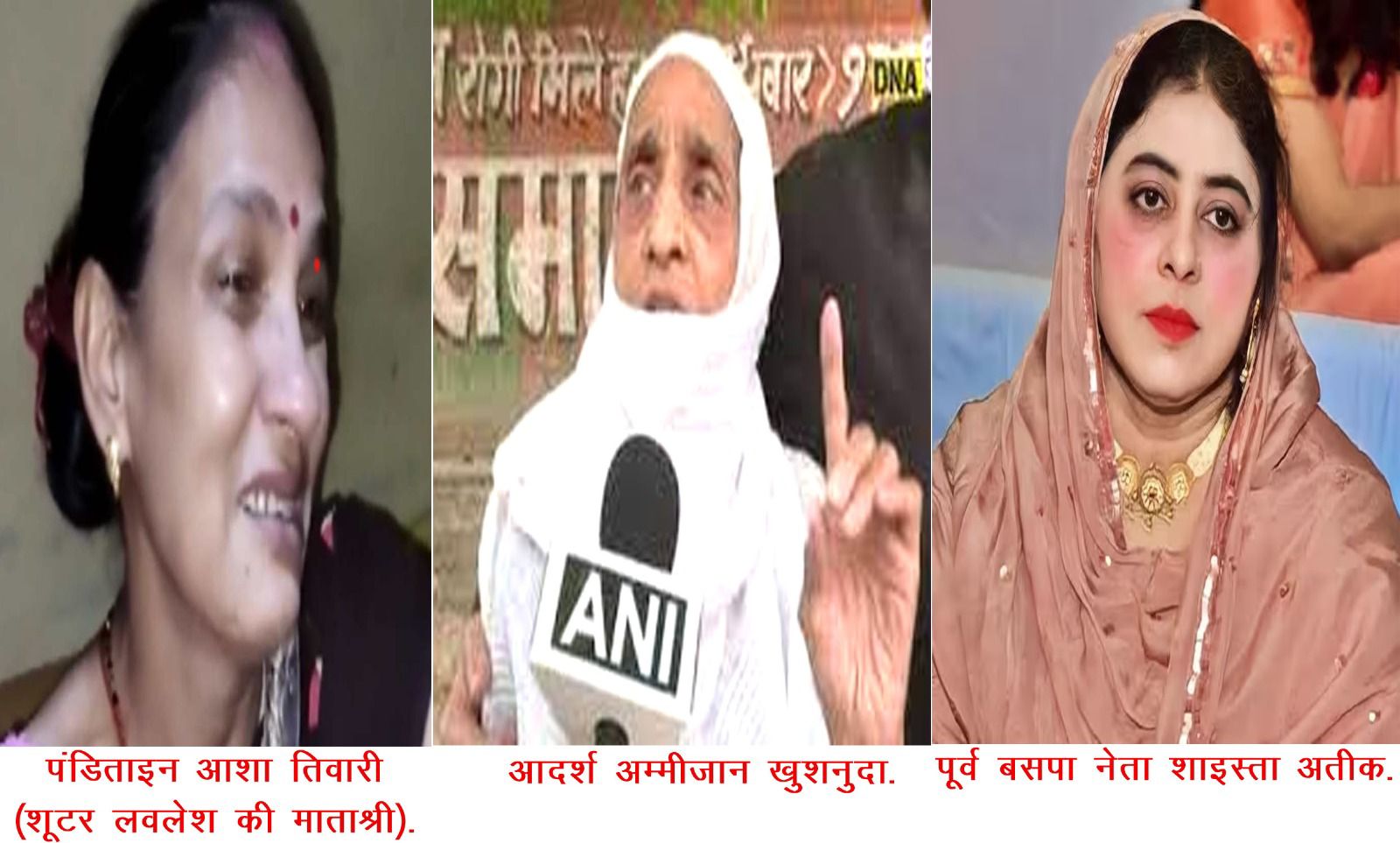अब कुछ तीसरी माताजी के विषय में। वे हैं पंडिताइन आशा यज्ञदत्त तिवारी, बांदा की। उनके सुपुत्र शूटर लवलेश तिवारी दो साथियों के साथ अभी प्रतापगढ़ जेल में हैं। नैनी मे थे। उस रात उनकी हरकत को टीवी पर देखकर तिवारी-दंपत्ति के घर चूल्हा नहीं जला था। मां कहती है कि पुत्र निर्दोष है। पर कुपुत्र की वारदातों से पिता अवगत था। अतः खामोश है।