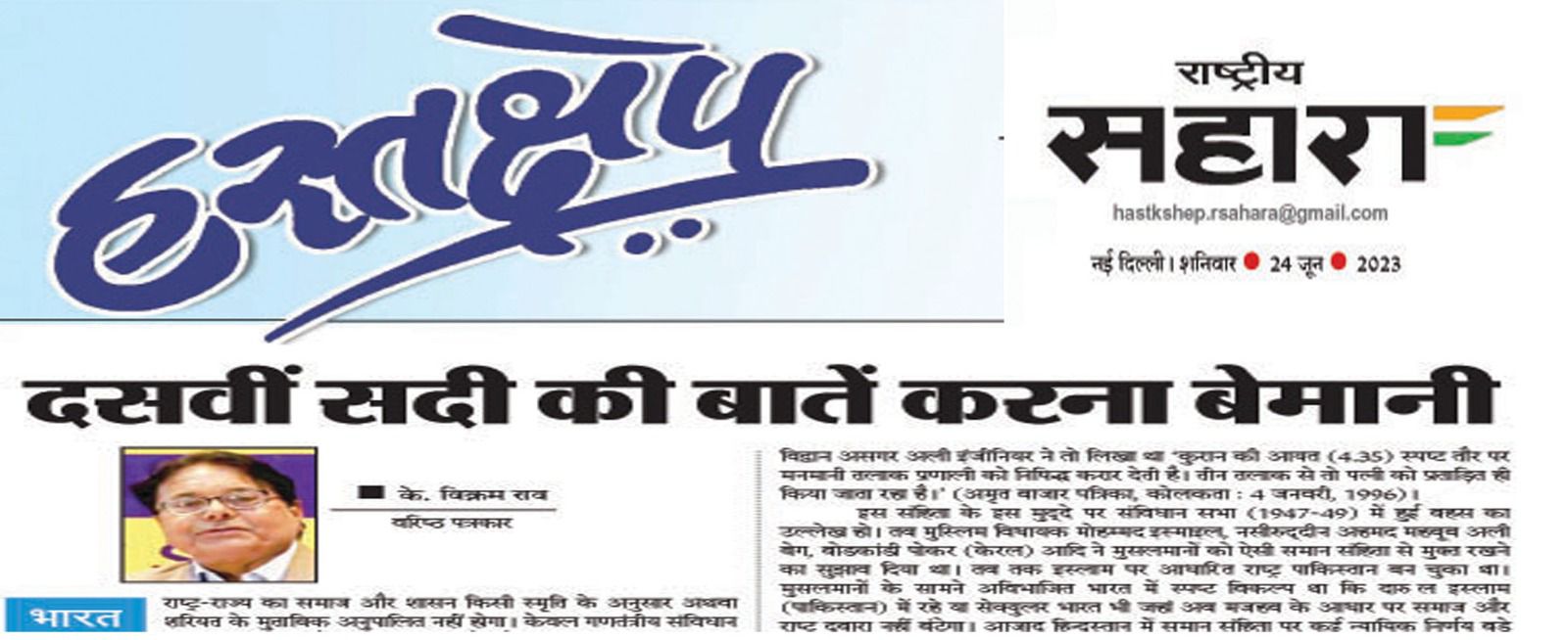 आज इक्कीस्वी सदी में दसवीं सदी की बातें करना भी विफल है। अर्थहीन है। महा सुन्नी चिंतक और पुणे की मुस्लिम सत्यशोधक और भारतीय सेक्युलर सोसायटी मंडल के संस्थापक हमीद दलवाई की बात याद आती है। तब मुंबई में “टाइम्स ऑफ इंडिया” के रिपोर्टर के नाते मैं एक सभा में गया था। वहां डॉ. राममनोहर लोहिया के साथ हमीद दलवाई थे। उन्हें इस मुस्लिम विचार की राय बड़ी स्पष्ट थी यदि भारत में रहना है तो मुसलमानों को गणतंत्रीय संविधान की धाराओं का पालन करना होगा। यदि वे आजादी के इतने वर्षों बाद भी ऐसा नहीं करते हैं। अगर वह अभी भी चार बीवी, तीन तलाक, हिलाला चाहते हैं तो दारुल इस्लाम में जा कर रहें। सेक्युलर भारत छोड़ दें। लीबिया, ईरान, पाकिस्तान, सऊदी अरब के सुझाए थे। हमीद दलवाई ने तभी सुझाया था कि हिंदुस्तानी मुसलमानों को राम, शिव और कृष्ण की भूमियों (अयोध्या, काशी, मथुरा) को मूल वासियों को लौटा देना चाहिए।