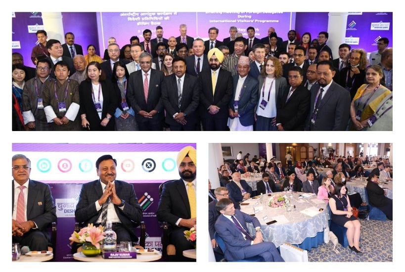 इस वर्ष, मौजूदा लोकसभा चुनाव 2024 के दायरे और पैमाने के अनुरूप, 23 देशों के विभिन्न चुनाव प्रबंधन निकायों (ईएमबी) और संगठनों - भूटान, मंगोलिया, ऑस्ट्रेलिया, मेडागास्कर, फिजी, किर्गिज़ गणराज्य, रूस, मोल्दोवा, ट्यूनीशिया, सेशेल्स, कंबोडिया, नेपाल, फिलीपींस, श्रीलंका, जिम्बाब्वे, बांग्लादेश, कजाकिस्तान, जॉर्जिया, चिली, उज्बेकिस्तान, मालदीव, पापुआ न्यू गिनी और नामीबिया का प्रतिनिधित्व करने वाला अब तक का सबसे बड़ा प्रतिनिधिमंडल है। इंटरनेशनल फाउंडेशन फॉर इलेक्टोरल सिस्टम्स (आईएफईएस) के सदस्य और भूटान और इज़राइल की मीडिया टीमें भी भाग ले रही हैं।