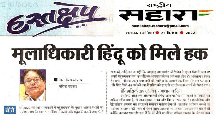 के. विक्रम राव, अध्यक्ष - इंडियन फेडरेशन ऑफ वर्किंग जर्नलिस्ट्स। बीतते वर्ष (2022) की अहम घटनाओं में बहुसंख्यकों के प