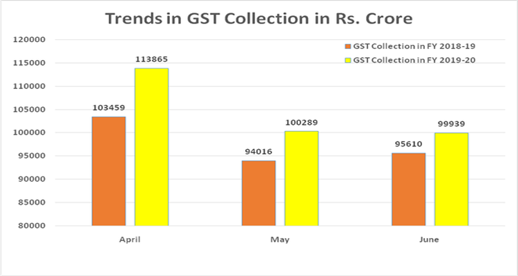 नई दिल्ली, 02 जुलाई 2019, इंडिया इनसाइड न्यूज़। जून, 2019 के महीने में वस्तु एंव सेवा कर के रूप में 99,939 करोड़ रूपए का सकल रा