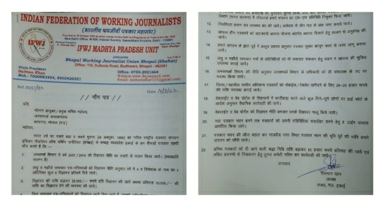 भोपाल-मध्य प्रदेश, इंडिया इनसाइड न्यूज़। देश के सबसे बड़े पत्रकार संगठन इंडियन फेडरेशन ऑफ वर्किग जर्नलिस्ट्स (आ