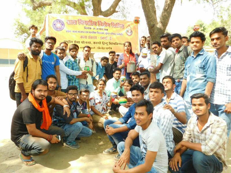 काशी हिंदू विश्वविद्यालय के राष्ट्रीय सेवा योजना की ओर से सुन्दरबगिया में आयोजित विशेष शिविर के तीसरे दिन पक्षियों को प्याऊ सहित विविध कार्यक्रम का आयोजन किया गया। कार्यक्रम अधिकारी डॉ• नेहा पाण्डेय की देखरेख में चल रहे विशेष शिविर में स्वयंसेवकों ने भीषण गर्मी में जल की एक बूंद के लिए तरसने वाले पक्षियों के लिए जलप्याऊ की व्यवस्था की। स्वयंसेवकों के पांचों दलों को 2-2 मृदभांड दिए गए जिस पर प्रत्येक दल ने मनभावन दृश्यों को उकेर कर उसमें जल भर कर लाला लाजपत राय प्राथमिक विद्यालय परिसर के वृक्षों पर टांगा।