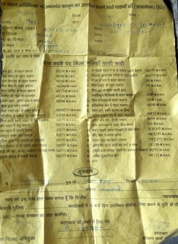 आपको बता दे कि गदागंज के अनिल कुमार स्थानीय पत्रकार है। उनकी पिकप गाड़ी धमधमा चौराहे के समीप एक होटल के सामने खड़ी हुई थी तभी अनिल की खबरों से झल्लाये गदागंज थाना प्रभारी ने कई धाराओं में चालान कर दिया। जब चालान चिट लेकर कोर्ट गये तो पता चला कि चालान जिस धारा में किया गया है वह तो उस समय धारा बन नहीं रही है। यही नहीं सड़क उबड़ खाबड़ है। सड़क पर तेज चलना तो दूर धीमी गति से भी चलना मुमकिन नहीं है लेकिन खबरों से झल्लाये गदागंज थाना प्रभारी ने अपनी खुन्नस निकालते हुए अपनी मनमर्जी का चालान करके कह डाला कि पहली बार मिले है पत्रकार जितनी धारा लग सके उतनी धारा में चालान करूंगा।