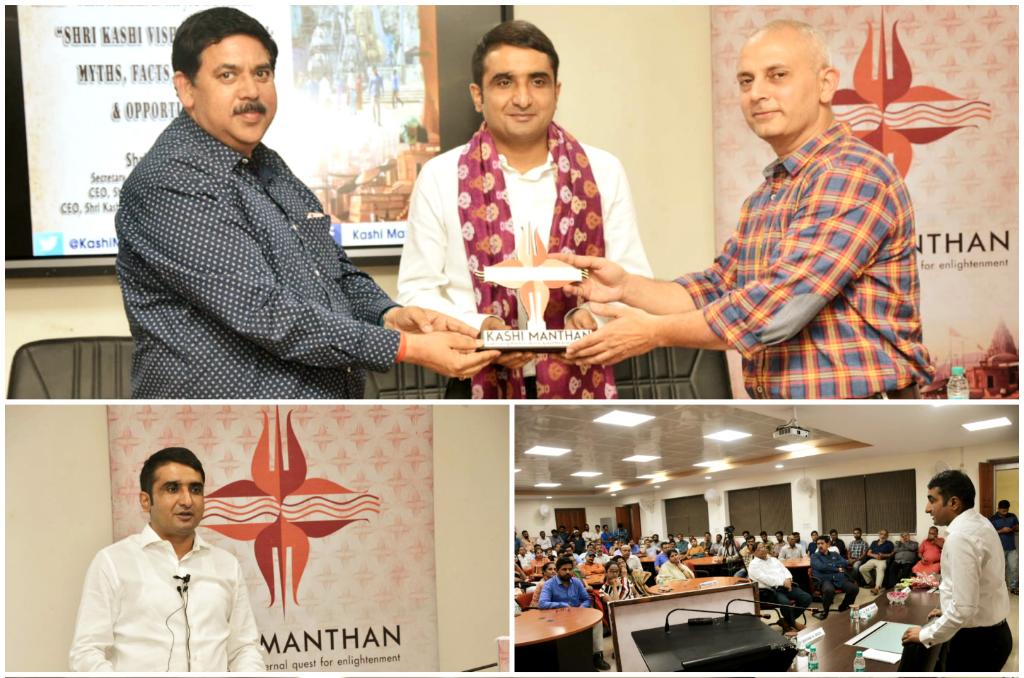 काशी हिन्दू विश्वविद्यालय के कामधेनु सभागार में काशी मंथन द्वारा काशी विश्वनाथ कॉरिडोर : मिथ्या, तथ्य, चुनौतियां और संभावनाएं विषय पर केंद्रित व्याख्यान का आयोजन हुआ। कार्यक्रम में मुख्य वक्ता के तौर पर वीडीए के सचिव तथा काशी विश्वनाथ मंदिर ट्रस्ट एवं काशी विश्वनाथ विशिष्ट क्षेत्र परिषद के मुख्य कार्यपालक अधिकारी विशाल सिंह उपस्थित ने निर्माणाधीन विश्वनाथ कॉरिडोर के बारे में विस्तृत चर्चा की। विश्वविद्यालय के छात्र-छात्राओं, प्राध्यापकों, कर्मचारियों के अलावा शहर के नागरिक से भरे हाल में श्रोताओं के सवालों से शुरू हुए सत्र में श्री सिंह ने एक-एक प्रश्नों का उत्तर देते हुए विश्वनाथ कॉरिडोर से जुड़ी तमाम भ्रांतियों को दूर करने का प्रयास किया। वीडियोज, चित्रों, नक्शों और प्रेजेंटेशन आदि के माध्यम से उपस्थित श्रोताओं को कॉरिडोर की रूपरेखा, उसके उद्देश्य तथा उसके क्रियान्वयन में आये अड़चनों का जिक्र करते हुए प्रोजेक्ट से जुड़ी किसी भी प्रकार की भ्रांति अथवा अफवाहों को पुरजोर तरीके से दूर करने का प्रयास किया।