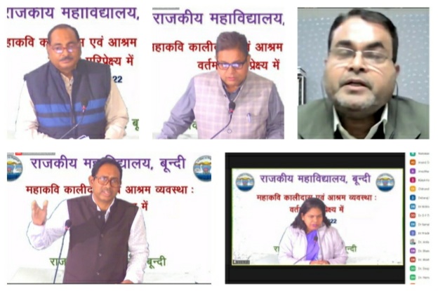 राजकीय महाविद्यालय, बूंदी के संस्कृत विभाग द्वारा आईक्यूएसी के तत्वावधान में शुक्रवार दिनांक 11 फरवरी 2022 को ‘‘महाकवि कालीदास एवं आश्रम व्यवस्था : वर्तमान परिप्रेक्ष्य में‘‘ विषय पर अन्तर्जालीय राष्ट्रीय वेबीनार प्रातः 11.00 बजे आयोजित की गई। जिसकी अध्यक्षता महाविद्यालय के प्राचार्य डॉ. सतीश सारस्वत ने की।