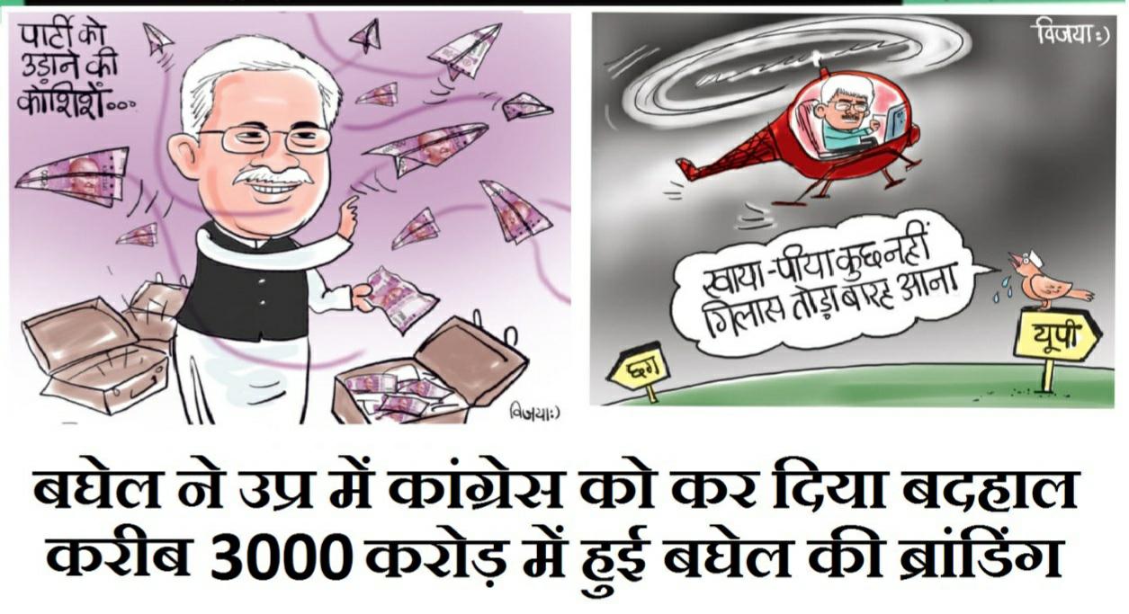 सूत्रों के मुताबिक इस बार कांग्रेस ने चुनाव में करीब 3000 करोड़ खर्च किए। यह पैसा चुनाव प्रभारी ने छत्तीसगढ़ से दिए। अब देखा जाए तो इस चुनाव में भूपेश बघेल और उनकी टीम ने इतनी जबरदस्त फिजूलखर्ची की जिसे आजतक कभी देखा नहीं गया। दरअसल इस चुनाव के माध्यम से भूपेश बघेल ने जो चाहा था वो हासिल कर लिया। अपने आप की पब्लिसिटी में करोडों रूपए फूंक दिए। कई जगहों पर देखने को आया कि इनको प्रियंका गांधी से ज्यादा मीडिया बाइट्स मिली। अपने आप को कांग्रेस का बड़ा चेहरा बनाने में वो कामयाब रहे, साथ ही गांधी परिवार के वो काफी नज़दीक आ गये। उनके इस खेल को कांग्रेस आलाकमान नहीं समझ पाई। उत्तर प्रदेश में पैसों की कितनी बर्बादी हुई है, इसका अंदाजा इस बात से ही लगाया जा सकता है कि सीएम भूपेश बघेल के सलाहकार विनोद वर्मा हवाई जहाज से रायपुर से लखनऊ और लखनऊ से रायपुर अप-डाउन करते रहे। इसके टीम पूरे समय महंगी होटल में बने रहे, इसमें करोड़ों रूपये तो किराये में ही खर्च कर दिये। हम अंदाजा लगा सकते हैं कि बघेल ने इस चुनाव में राज्य का कितना पैसा बर्बाद किया है। स्वाभाविक है कि बर्बादी का यह सब पैसा छत्तीसगढ़ का ही था। चुनाव प्रचार के नाम पर बघेल ने अरबों रूपये की लूटपाट मचायी। इसके साथ ही दो बार करीब-करीब 30-30 छत्तीसगढ़ शासन के स्पेशल ब्रांच के पुलिसकर्मियों को 01 महीने में दो बार उत्तर प्रदेश की हर सीट का जायजा लेने भेजा, आखिर यह असंवैधानिक काम से प्रदेश के शासन तंत्र को शर्मिंदगी उठानी पडी है। इस मामले की जांच होनी चाहिए और दोषियों के खिलाफ कार्रवाई भी होनी चाहिए।