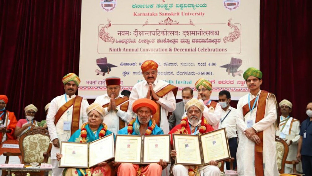इस अवसर पर उपराष्ट्रपति ने तीन प्रख्यात विद्वानों, आचार्य प्रद्युम्न, डॉ. वी.एस. इंदिराम्मा और विदवान उमाकांत भट, को मानद डॉक्टरेट डिग्री से सम्मानित किया।