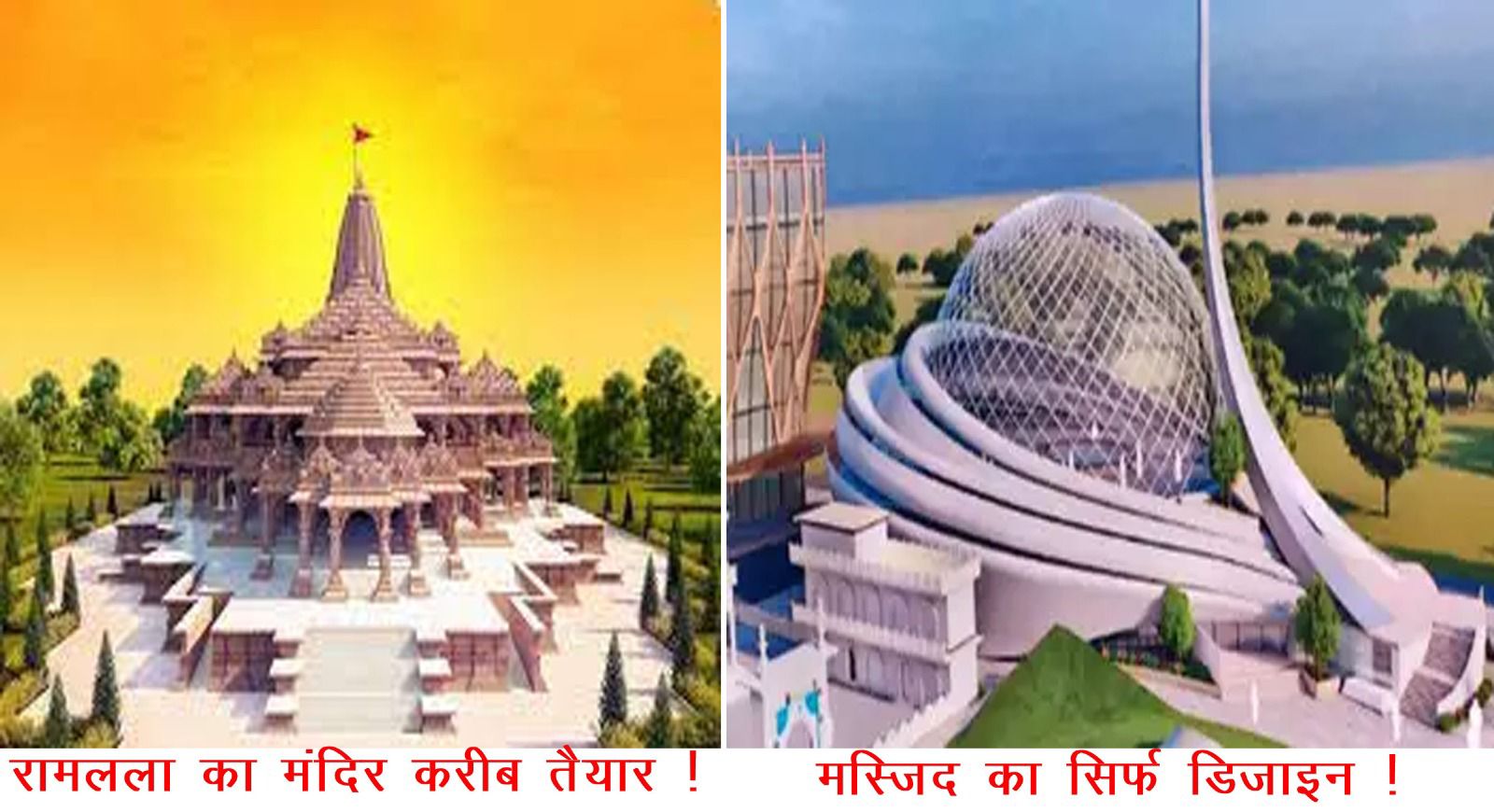 याद रहे कि मस्जिद निर्माण विषय पर कभी भी मुसलमानों मे एक मत नहीं बन पाया। सुप्रीम कोर्ट में मस्जिद के वकील जनाब जन्नतनशीन जफरयाब जिलानी का मानना था कि सर्वोच्च न्यायालय का निर्णय वक्फ बोर्ड के नियमों के विपरीत है। शरियत कानून की भी अवहेलना है। फिलहाल मंदिर तो निर्माण के शिखर पर है। मस्जिद अभी भी कच्छ्प गति से है, आधे अधूरे दौर में ही। शायद खुदा की कृपा की आस में।