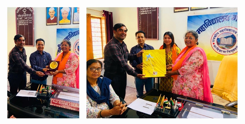 राजकीय महाविद्यालय की प्राचार्या शर्मिला सक्सेना व अर्थशास्त्र विभाग की शिक्षिका तनुजा परिहार को शिक्षा के क्षेत्र में दिए जा रहे सराहनीय योगदान के लिए स्मृति चिन्ह व अंगवस्त्र प्रदान कर सम्मानित किया गया।