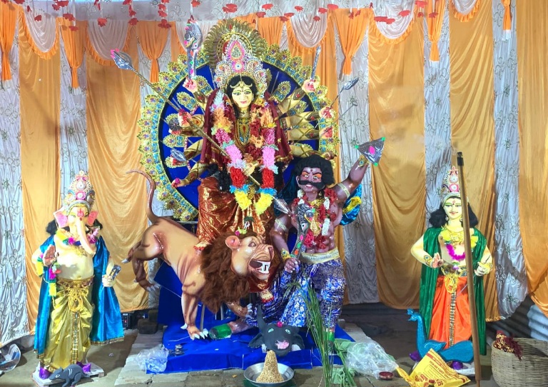 गंजाम जिले के बेगुनियापाड़ा ब्लॉक के चिंगुडीखोल गांव में इस साल शारदीय दुर्गा पूजा का आयोजन किया गया है। सुबह मुख्य उपासक पहुंचने के बाद मां की नित्यक्रिया हुई तो दोपहर में पूजामंडप की परिक्रमा कर भक्तों को मां के दर्शन हुए। नवमी के दिन मां के दर्शन के लिए आसपास के क्षेत्रों से भक्तों की भारी भीड़ उमड़ पड़ी। वहीं गांव के युवाओं ने बढ़-चढ़कर इस धार्मिक अनुष्ठान में सम्मिलित हुए और दुर्गा पूजा धूमधाम से मनाया। जानकारी के अनुसार, ग्रामीण 45 वर्षों से अधिक समय से गांव में दुर्गा पूजा मनाते आ रहे हैं।