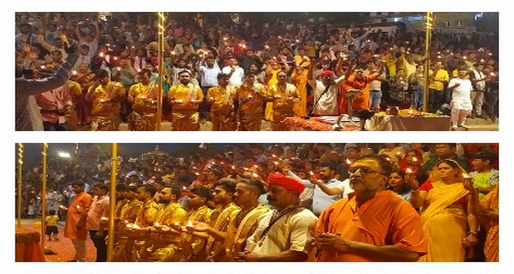 --हरेन्द्र शुक्ला, वाराणसी - उत्तर प्रदेश, इंडिया इनसाइड न्यूज। ● अस्सी घाट पर गंगा सेवा समिति की गंगा आरती रेल दुर