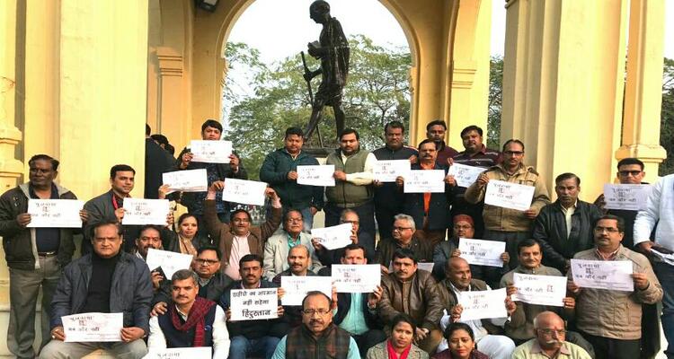 लखनऊ, 15 फरवरी 2019, इंडिया इनसाइड न्यूज़। जम्मू-कश्मीर के पुलवामा में हुए आतंकी हमले के विरोध में पत्रकारों ने राजधा
